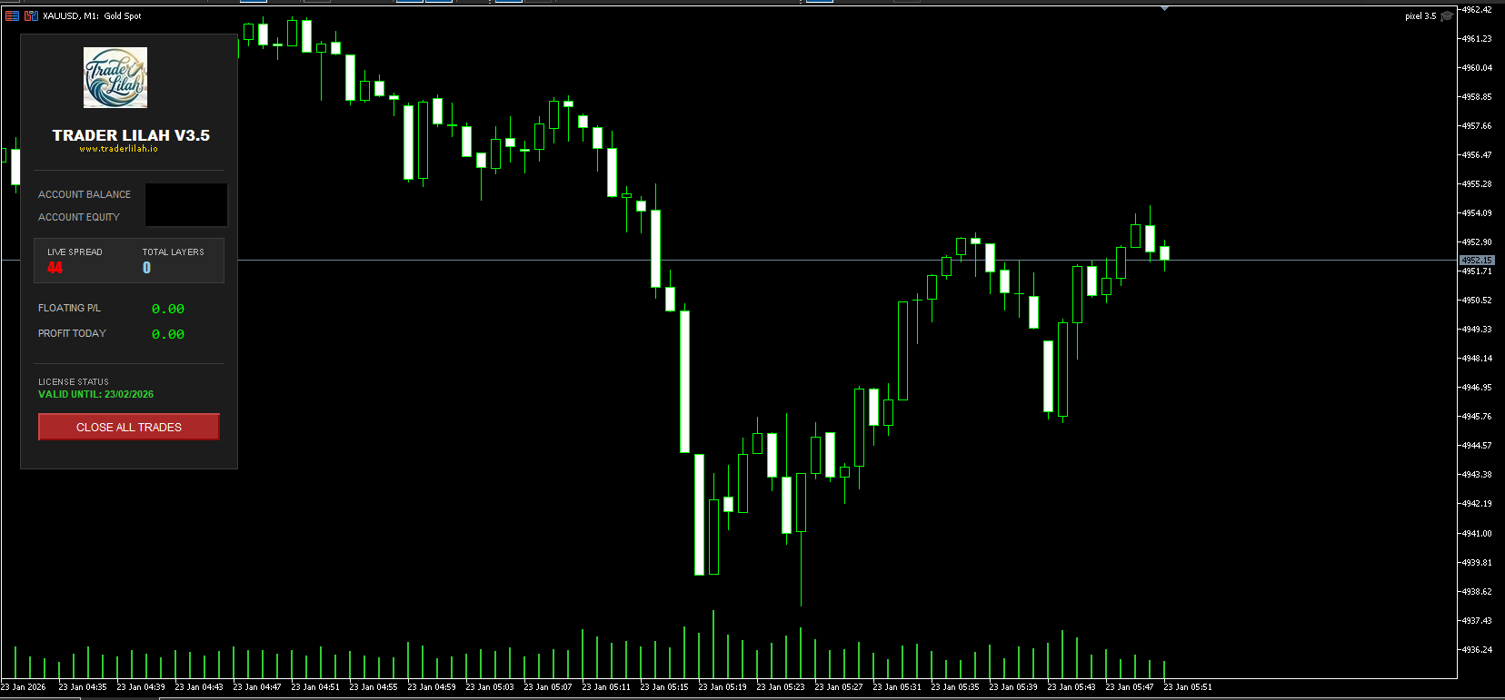 PENTING: DISCLAIMER PENGGUNAAN EA EA ini hanyalah sebuah alat bantu (tool) untuk membantu aktivitas trading Anda. Segala keuntungan maupun kerugian yang timbul adalah tanggung jawab penuh pengguna. Kami tidak memberikan jaminan profit dan tidak bertanggung jawab atas kehilangan dana akibat penggunaan alat ini. Trade with your own risk
